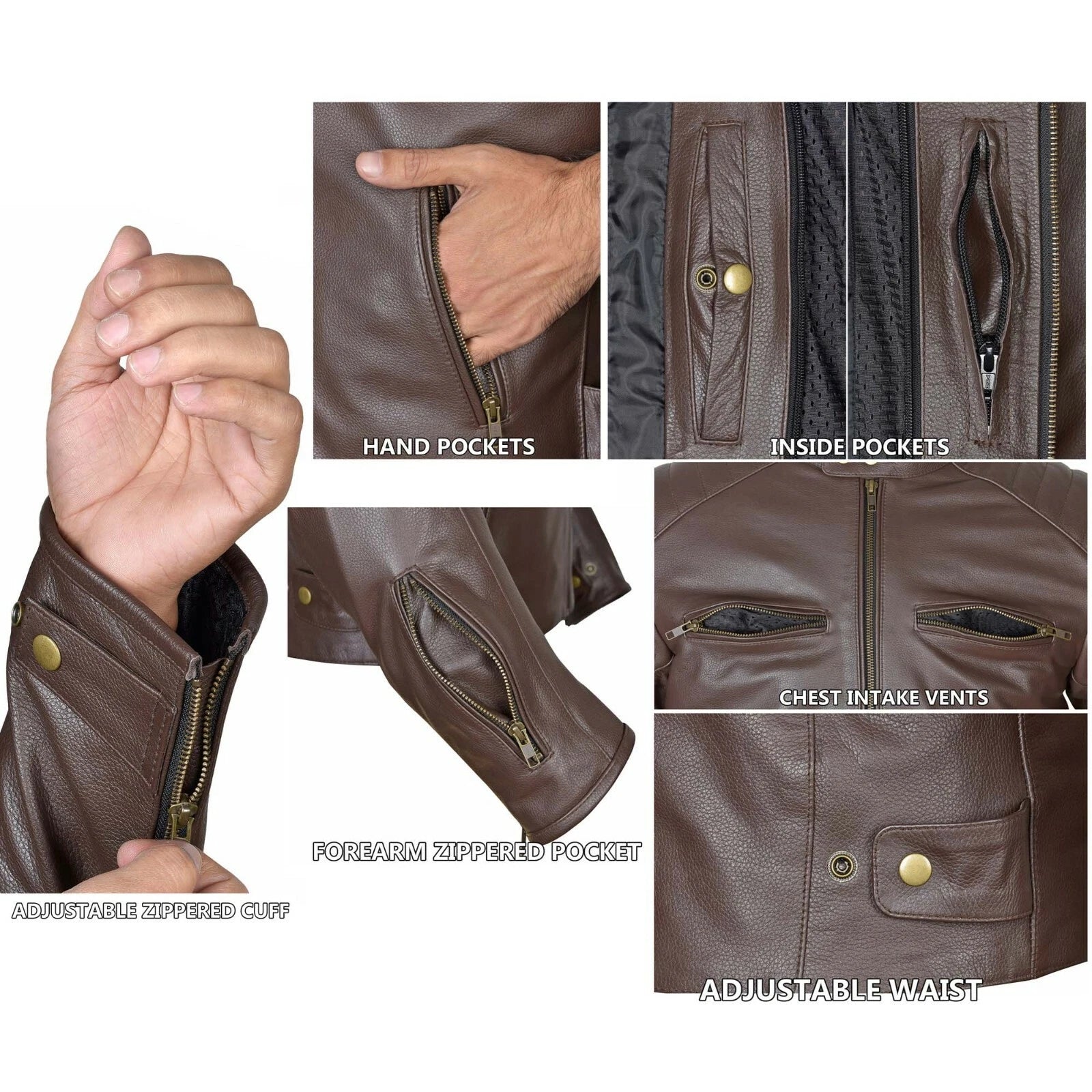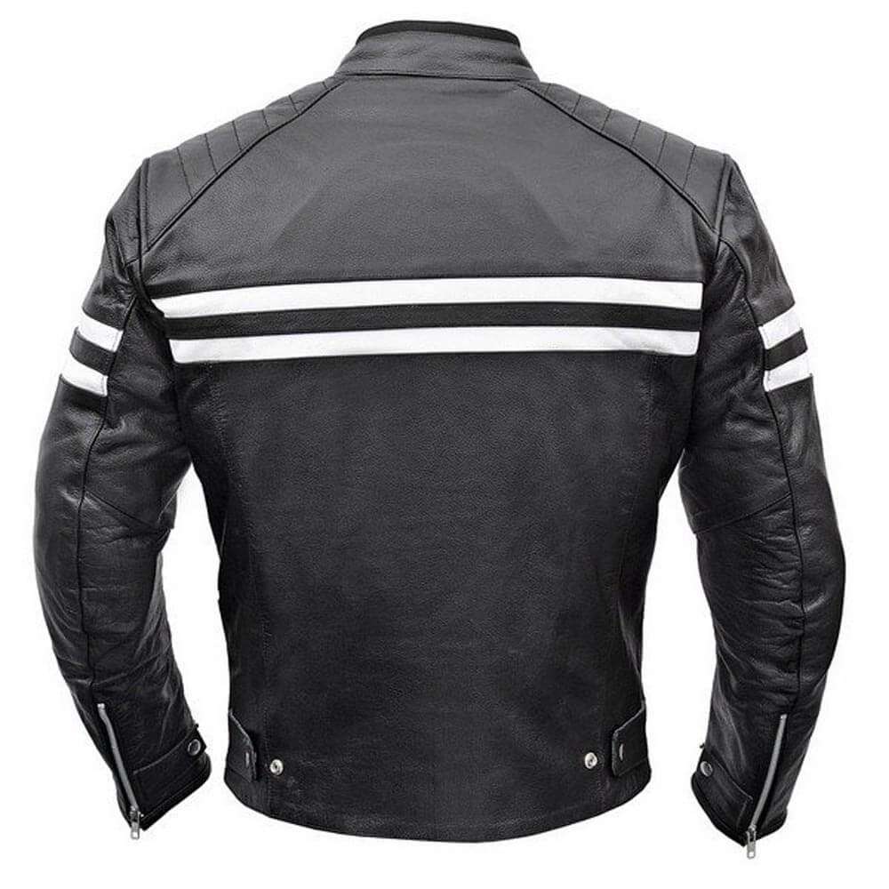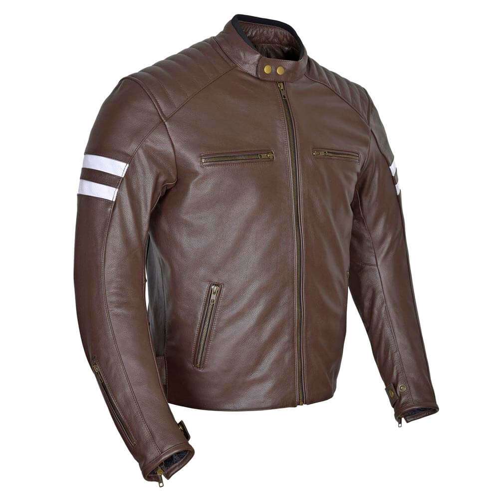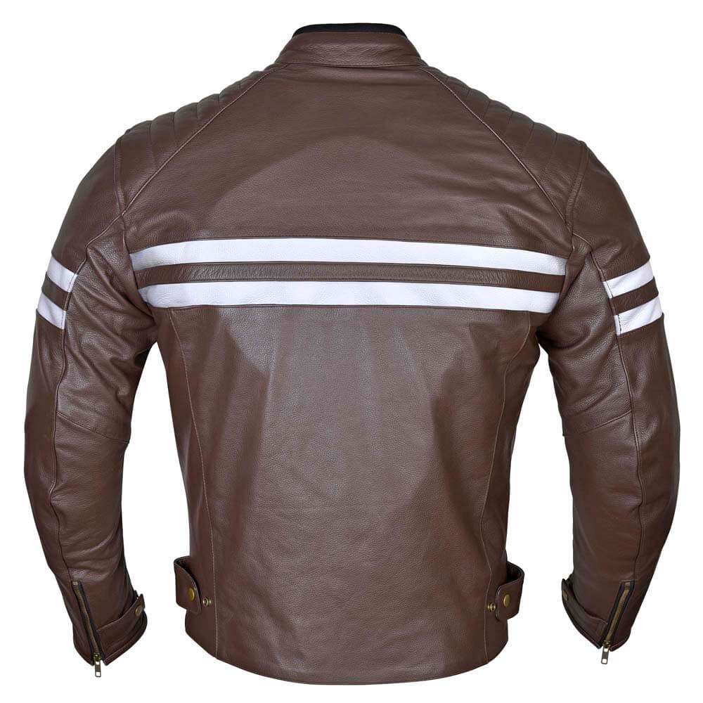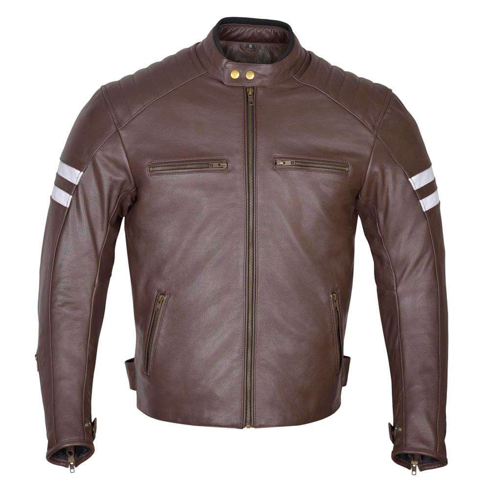 PLEASE MAKE SURE YOU MEASURE YOURSELF UP AND READ THE SIZING CHART BEFOR YOU ORDER. Full Grain 1.1 to 1.2mm drum dyed cowhide for maximum abrasion resistance. Fully removable 5-piece CE certified armor for elbows, shoulders and back. Full sleeve quilted zip out thermal liner for warmth and comfort.