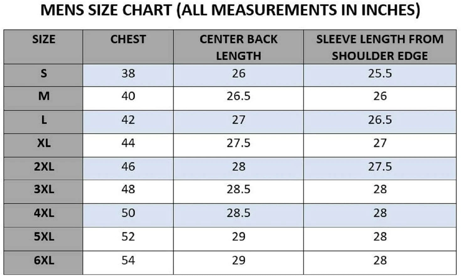 XS, S, M, L, XL, 2XL, 3XL, 4XL |
