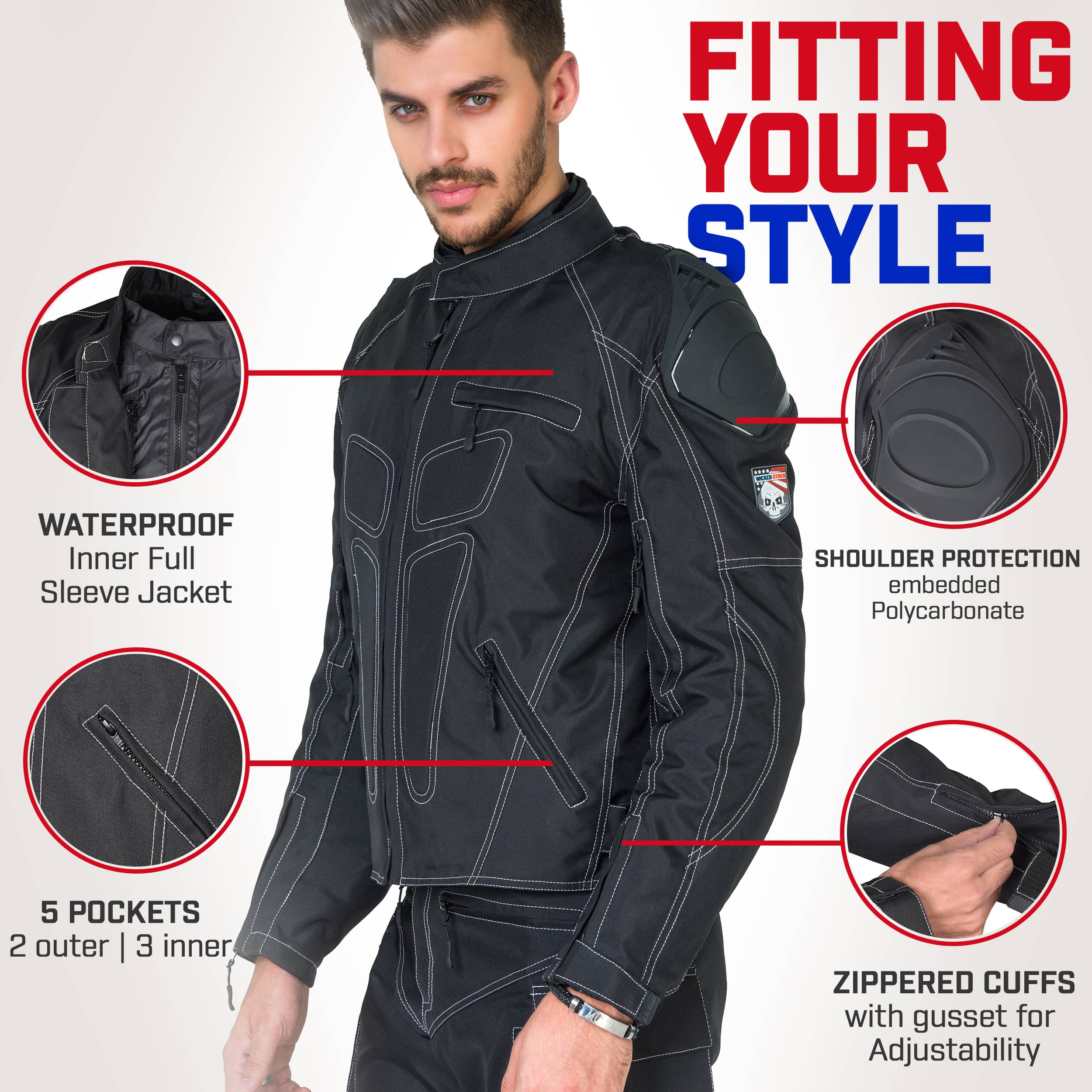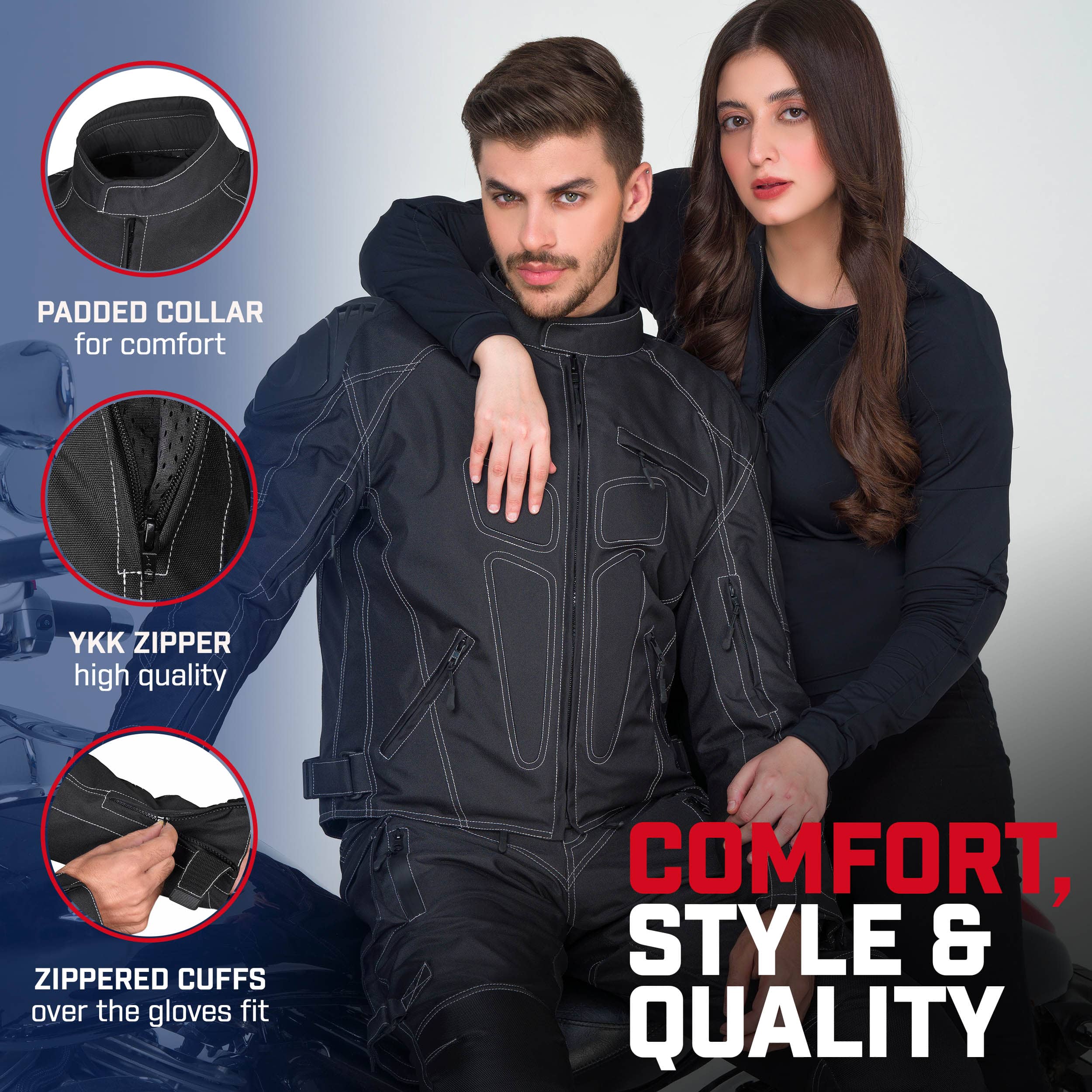 Comfort Meets Style: Designed with your comfort in mind, it features adjustable waist straps, preventing that annoying jacket ride-up. A soft padded collar takes care of chafing concerns, and zippered cuffs with an over-the-gloves fit add a touch of convenience. The eye-catching double-seam white stitched Lightweight and stylish design, this jacket is your perfect companion for hitting the road.