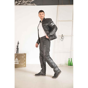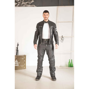 WICKED STOCK Leather Pants for Men Black Motorcycle Riding Pants-Armored Off Road Adventure