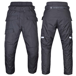 DUAL SPORT WATERPROOF PANTS: This powersports protective gear is fully waterproof for every day all weather rides. The fixed waterproof liner in these motorcycle gear pants will keep you warm and dry when weather is cold and wet. These motorcycle pants mens have three huge waterproof pockets including a cargo pocket on right leg. Two thigh vents with waterproof zippers for air flow. These motorcycle armor motocross pants are water resistant and have YKK zippers.