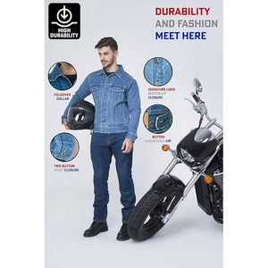 WICKED STOCK Men-Jeans Jacket motorcycle-Trucker Jacket for Men-Denim Casual Rugged Wear Riding Jacket