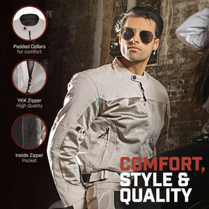 Tucson Mens Mesh Motorcycle Jacket from WICKED STOCK Silver/Gray